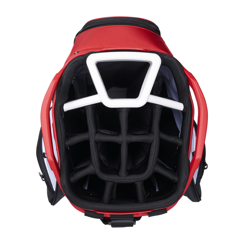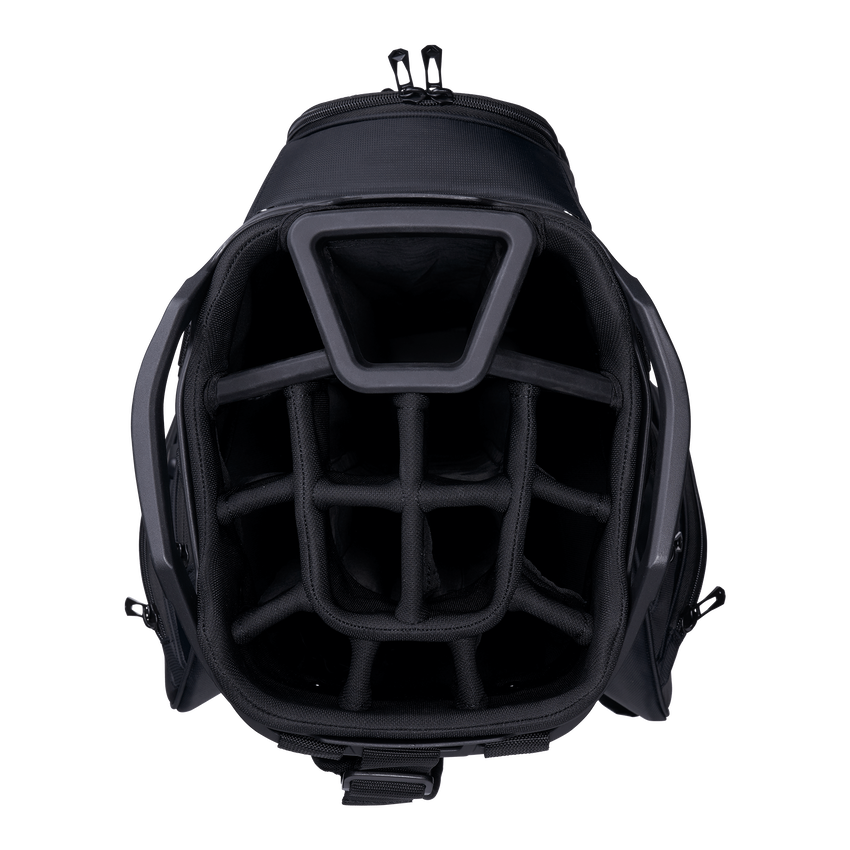 The all-new ORG 14 takes organization and compatibility to the next level. Upgraded with Lowrider technology, ORG 14 integrates with most modern push-carts and provides a secure walk with two push-cart straps and a refined cart strap pass-thru. Revamped pockets include a rapid access pocket, insulated cooler pocket and accommodating apparel pockets. ORG 14 provides all the storage and organization you need for your round – and then some.