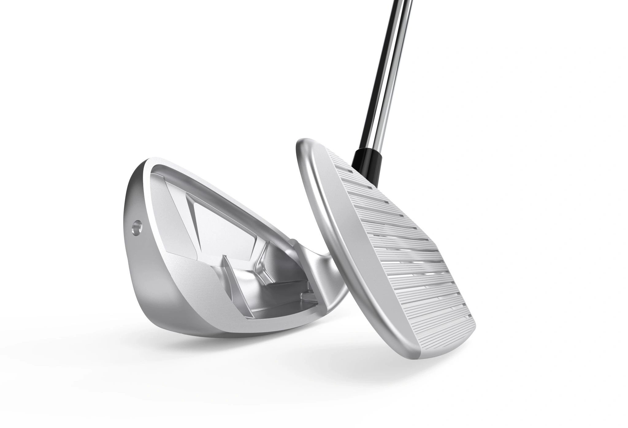 Hollow long irons (4i – 7i) provide more forgiveness with lower, deeper weight distribution, while cavity back short irons (8i – DW) provide more control when attacking the pin.