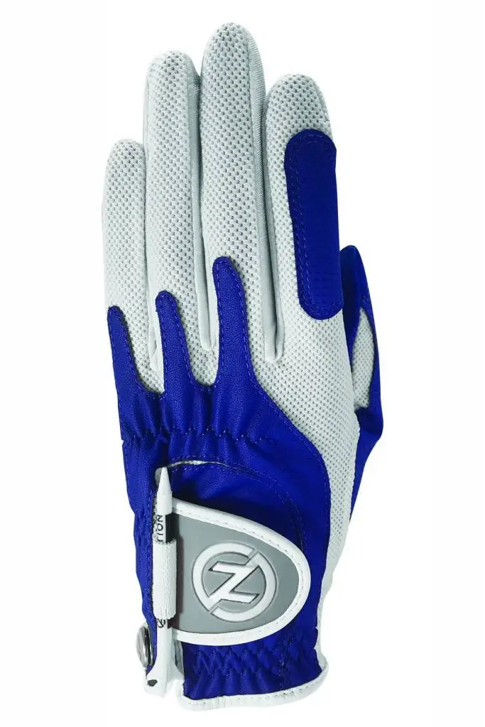 Count on Zero Friction Performance Golf to design a Superior Golf Glove using Compression-Fit Technology. Features: – All-Weather Synthetic Digitized Palm and Patch – Detachable Ball Marker – Holds Shape Longer – Smooth Palm for Maximum Feel – White Mesh Lycra Throughout Finger, Back of Hand and Palm for Breathability – Includes (1) Free ZFV 5-Prong Performance Tee
